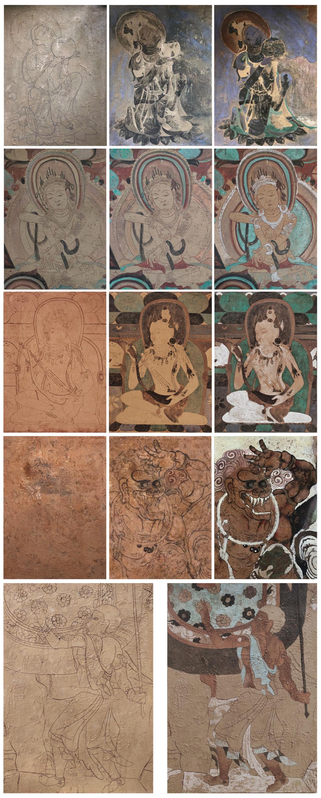 在临摹阶段,逐一对学生选择的摹本进行色彩分析,通过多视角、多方位的解读,让学生体会岩彩绘画的多层色面结构以及材质的表现方法,通过临摹,力求掌握岩彩绘画的基本制作方法。