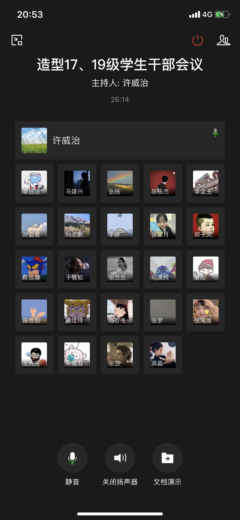 3月20日,造型艺术学院党总支副书记杜鹏、团总支副书记王晓琼和辅导员许威治通过企业微信APP,分年级组织召开线上学生干部例会,重点在疫情防控、学校对学生返校的纪律规定、网课教学及学生心理调适等方面提出要求,各年级全体学生干部参会。