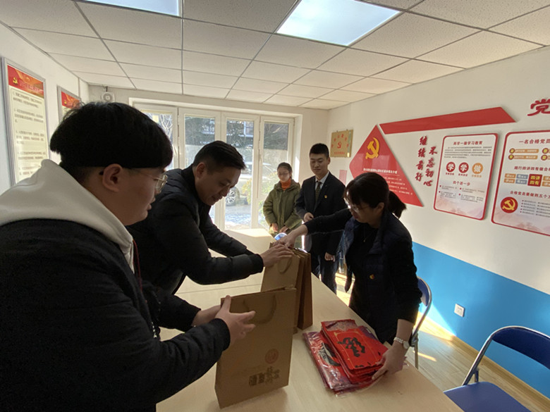 走访活动的最后,造型艺术学院党总支向润和山居社区送上了学生党员手写的新年春联和福字,表达对社区居民的节日祝福,为本年度的校地结对共建活动画下圆满句号。
