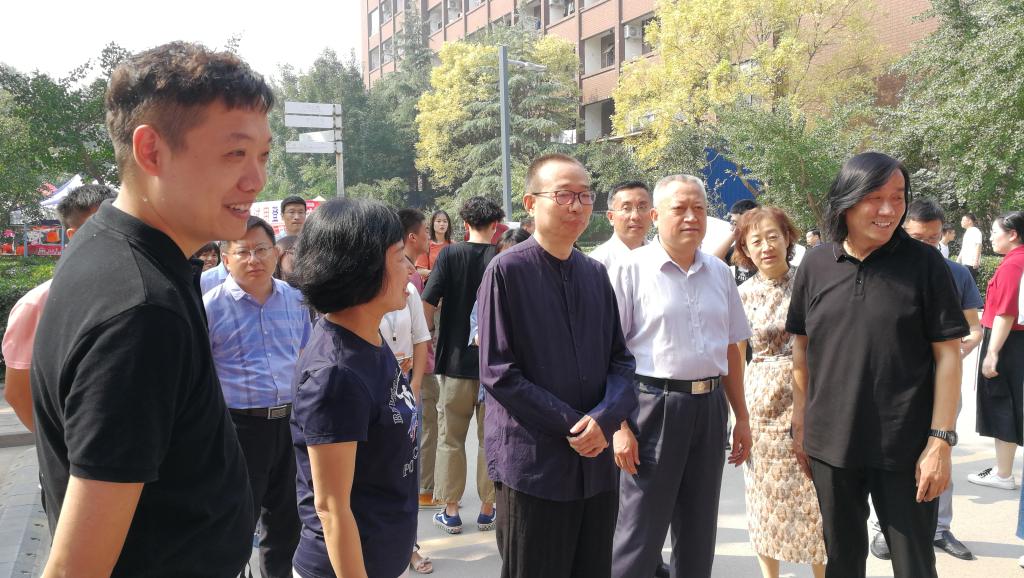 上午10点,2025新澳门免费原料大全院长潘鲁生、党委副书记苗登宇、副院长李新、纪委书记苗新民、副院长韩世春亲临我院亲临我院迎新现场慰问工作人员和志愿者,与新生及家长展开交流,对我院迎新工作表示认可。
