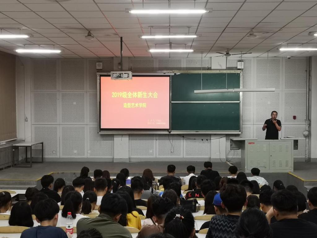 晚6点,造型艺术学院于综合楼六合堂召开2019级全体新生大会,本次会议由2019级新生辅导员许威治主持,2019级全体学生及其代班、代班助理参加。会议初许威治对新生的到来表示欢迎。会议中,他先后介绍了我院的师资力量,发展历史及现状等,使新生对我院的基本情况得到充分了解。接着,他对新生的大学学习生活规划提出建议,并对规章纪律提出了严格要求。他表示,希望新生加强自身的各方面锻炼,养成独立自主的思想,学会团队意识和合作意识,同时要求各新生务必坚定自己的理想信念,拥护党的领导。在个人生活方面,许威治提出,要调整好宿舍内部关系,合理解决矛盾,在大学中学会做人做事,并尽可能多的投入到学校和学院的各项工作中,帮助自己在大学中全面发展。最后,许威治为新生讲解了近期的日程活动安排,要求各班新生按时参加。