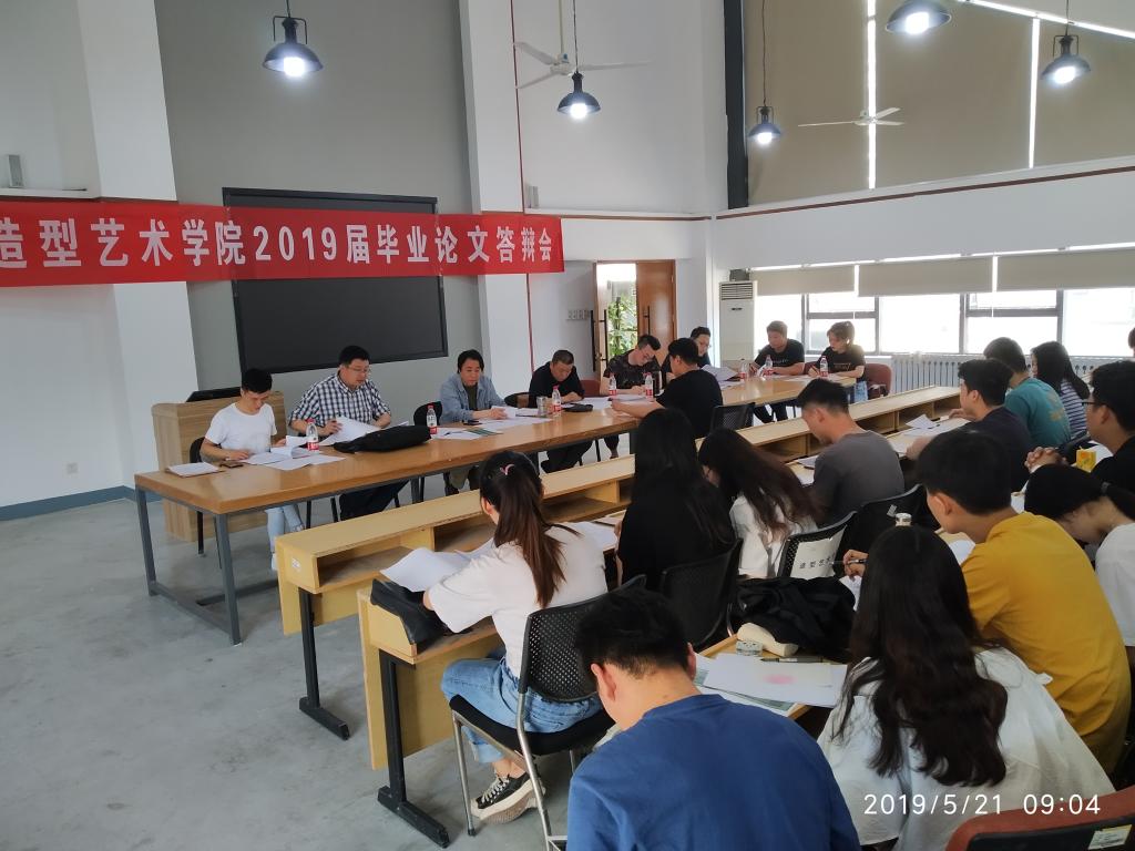 毕业论文答辩是大学生在校期间的最后学习和综合训练阶段;是学习深化、拓宽、综合运用所学知识的重要过程,同时也是对大学生知识水平和综合素质的全面考核,是本科生培养目标的重要环节,是对学校教学和各课教师培养结果的集中展示和效果再现。因此, 造型艺术学院指导教师和毕业生对毕业论文的指导和写作倾注了大量心血。本届造型艺术学院的毕业论文写作采取毕业创作报告和学术论文相结合的方式,学生根据自身的知识结构自主选择写作方式,充分发挥了学生的主动性,取得了良好的效果。答辩过程分为学生陈述、答辩专家提问和学生回答问题三部分进行。答辩学生依次对自己毕业论文的主要内容作了简要介绍,并对各位答辩委员提出的问题做出回答,工作人员对整个答辩过程做了详细记录。答辩过程中同学们井然有序,答辩委员们实事求是、严肃认真的评价了每位同学的论文,现场氛围严肃、紧张而又活泼。