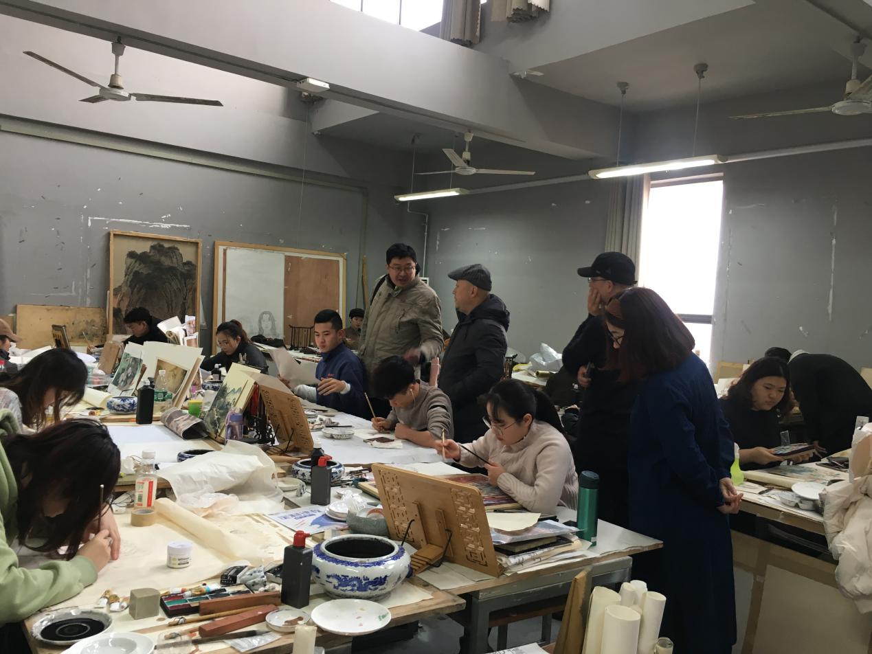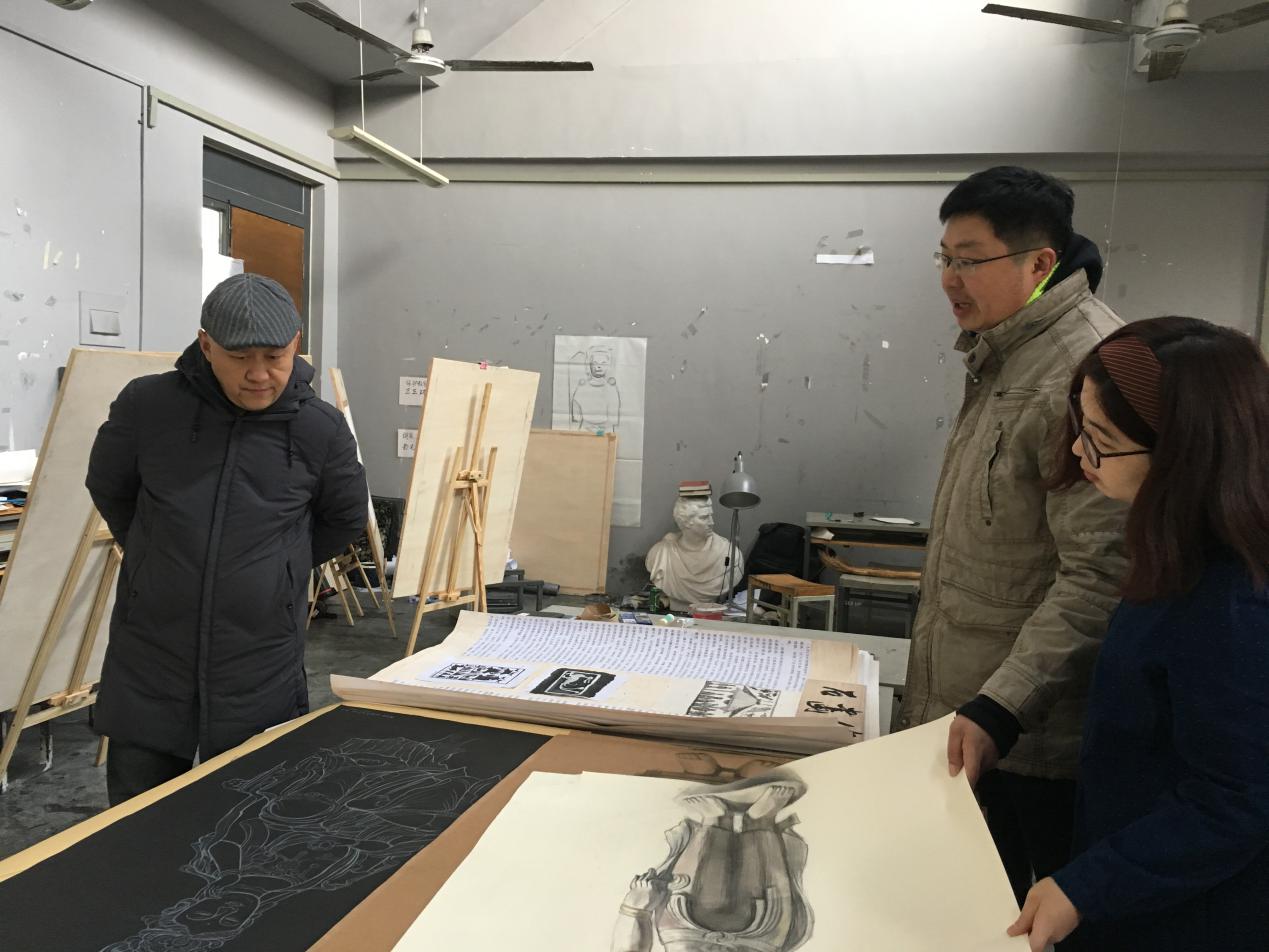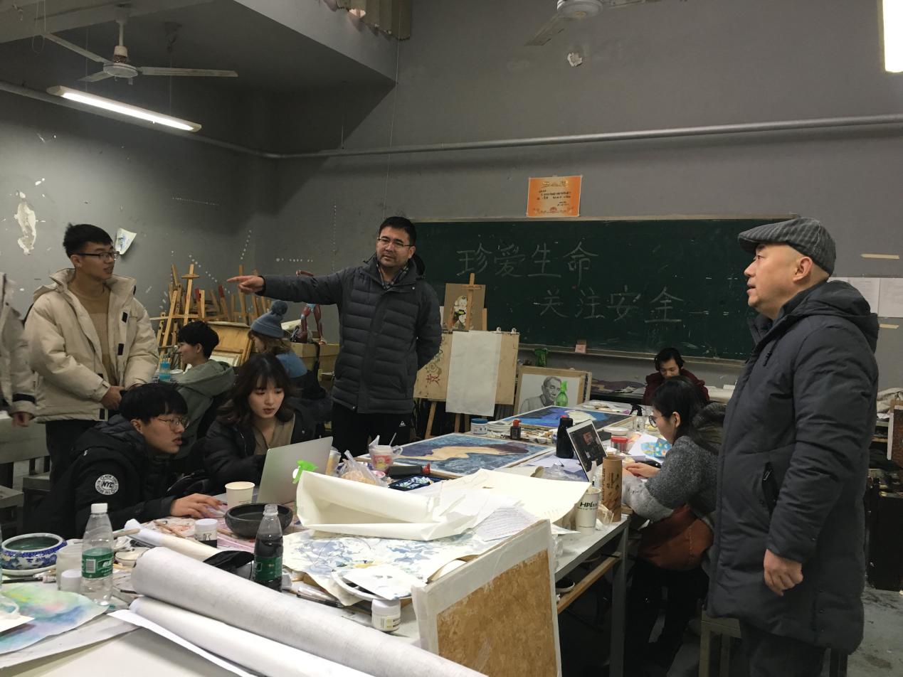 为保证学期末教学秩序的正常行进并了解各年级教学空间情况, 2019年1月14日上午,造型艺术学院副院长刘宁、国画教研室副主任丁雷及办公室人员来到学院教室检查教学情况及教学空间的安全卫生情况。