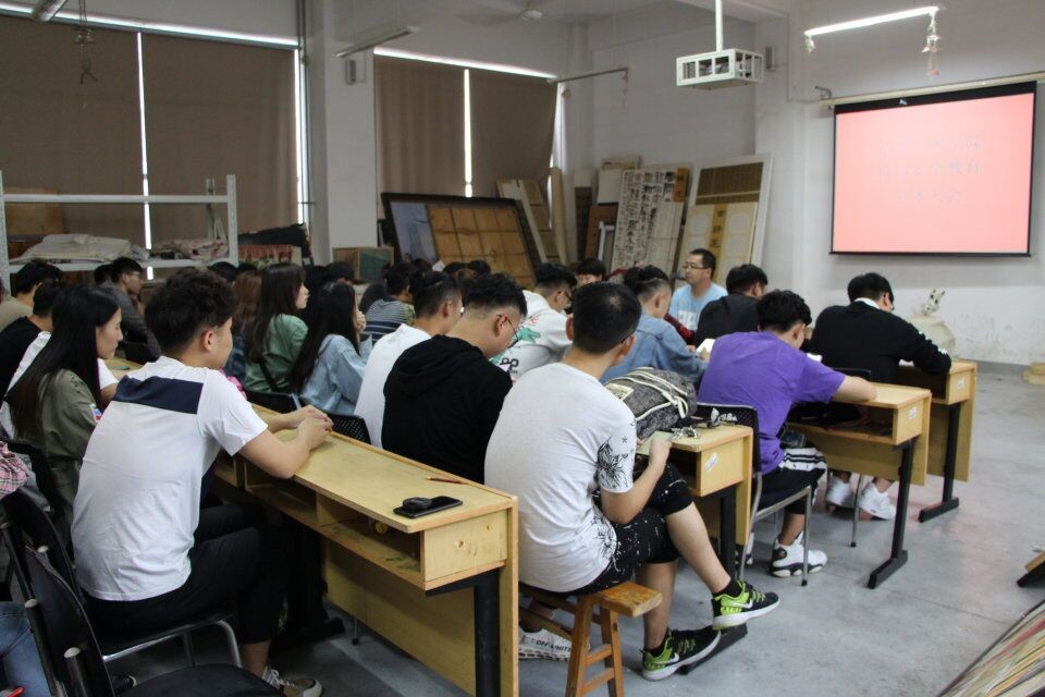 为加强校园安全意识及新学期各项工作的管理和落实,2018年9月19日中午,造型艺术学院在二楼多媒体教室召开校园安全教育动员会,本次会议由辅导员王晓琼、许威治主持,15级、16级和17级各班班委积极参加本次例会。