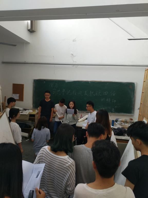 8月30日,中共中央总书记、国家主席、中央军委主席习近平给中央美术学院8位老教授回信,向老一辈美育工作者致以诚挚的问候,这充分肯定了美术教育在弘扬中华美育精神方面的重要作用和做好美育工作重要性,表达了对青年学生成长成才的亲切关怀。为了进一步做好关于习近平总书记回信的学习活动工作,2018年9月6日,造型艺术学院团总支在二楼多媒体召开关于学习习近平总书记给中央美院老教授回信的动员会,安排各团支部开展习近平总书记回信的学习工作。