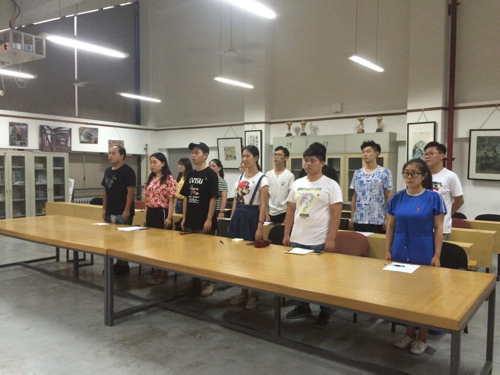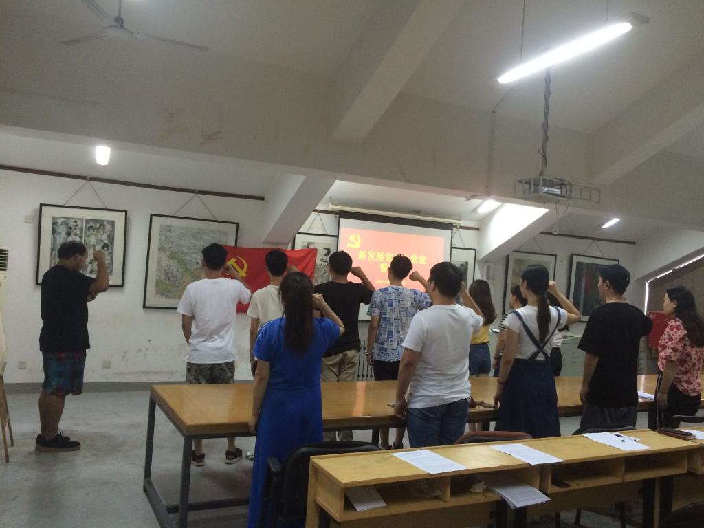 7月10日下午,造型艺术学院学生党支部新发展党员入党宣誓仪式在综合楼四楼多媒体教室顺利举行。仪式由党支部书记王晓琼主持,全体党员和部分入党积极分子参加活动。