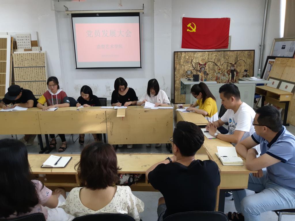 为了壮大党员队伍,为党支部发展打下坚实的基础,贯彻落实十九大精神,6月14日上午,造型艺术学院学生党支部于二楼多媒体教室召开党员发展大会。会议由学生党支部书记王晓琼主持,党支部全体党员参会,党总支书记牛序茜、副书记杜鹏、辅导员许威治列席会议。