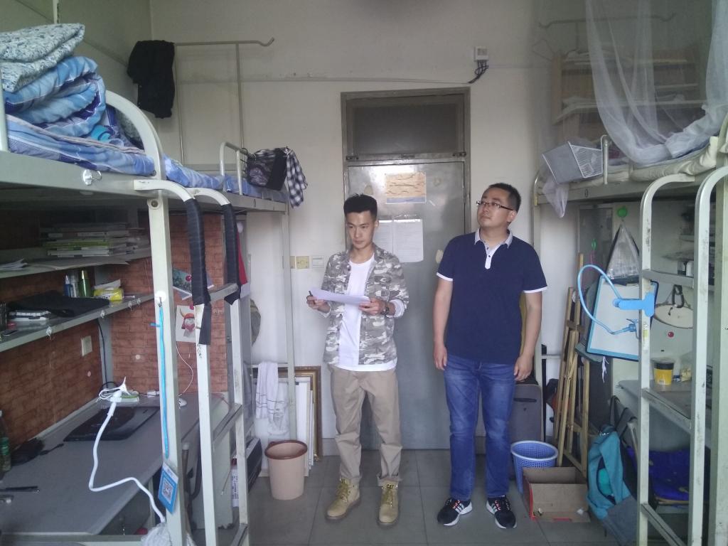为了增强同学们的安全意识,加强学生公寓管理,养成良好的卫生习惯,营造积极健康的宿舍氛围。5月7、8日上午,造型艺术学院党总支副书记杜鹏带领辅导员王晓琼、许威治对学生公寓进行了逐一检查。