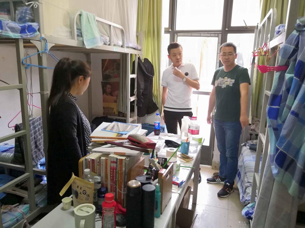 三位老师先后检查了各个年级的宿舍卫生和安全情况,并对检查过程中发现的问题进行详细记录和拍照。本次检查中,发现公寓安全卫生情况有较大改善,大部分宿舍能够严格遵守宿舍卫生安全的各项规定,但个别宿舍还存在东西多且杂乱、人走不断电、乱拉乱扯网线等现象,特别是高年级宿舍存在物品多、整体凌乱等问题。杜鹏针对情况严重的宿舍提出了具体明确的标准,并要求存在问题的宿舍及时整改。