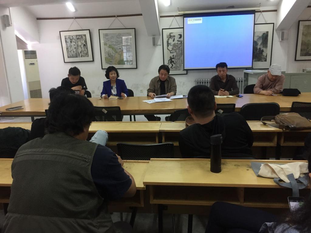 高振堂、刘宁分别结合全国艺术硕士美术指导教师优秀作品巡展以及学院人才培养方案的修订、毕业展和毕业论文答辩等工作做了重点说明。