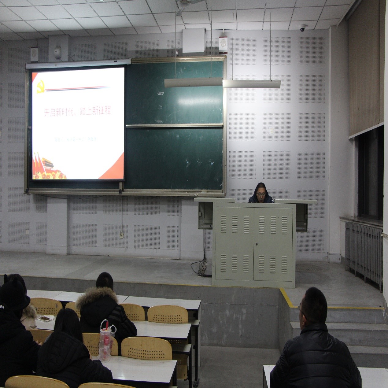 会议伊始,胡老师提出学习十九大的重要性与必然性,并详细介绍了十九大不忘初心,牢记使命,高举中国特色社会主义伟大旗帜,决胜全面建成小康社会,夺取新时代中国特色社会主义伟大胜利,为实现中华民族伟大复兴的中国梦不懈奋斗的主题。本次宣讲会主要分为三个方面:工作介绍、党的政策解读、共青团员的未来成长。胡老师联系自身经历讲述了第一书记抓党建,促脱贫的两大基本工作,详细描述了加强农村工作的必要性。随后,胡老师带领全体团员全面学习、完整领会党的十九大精神,用新时代中国特色社会主义思想武装头脑,自觉践行到自身的工作、学习和生活中。最后,胡老师提出全体共青团员应加强思想道德建设,提高思想觉悟,道德水准,文明素养,明是非,知善恶,辨美丑,做合格、优秀的青年大学生。