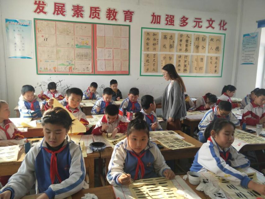 支教教师团队分别到达目的地,与在校老师交流沟通中了解情况后,根据自己不同的专业与特长,为孩子们开展素拓课和特色课,如手工、毛笔等。在分享知识的同时又通过有奖问答的形式给孩子们奖励,孩子们都表现的很活跃。支教教师们都表现出极高的工作热情和奉献能力,通过实践得到了在校老师们的充分肯定。课后,支教教师们又都将孩子们课上成果整理总结起来并展出,孩子们脸上满是笑容。最后,在教学任务结束时支教教师们与孩子们合影留念。