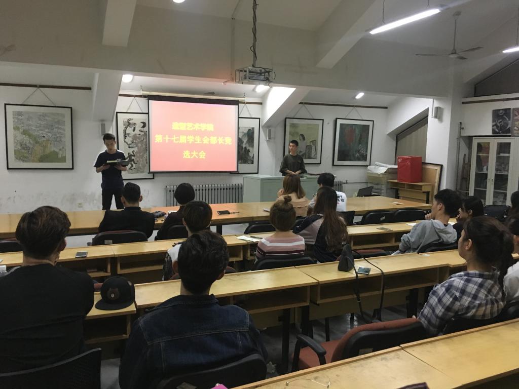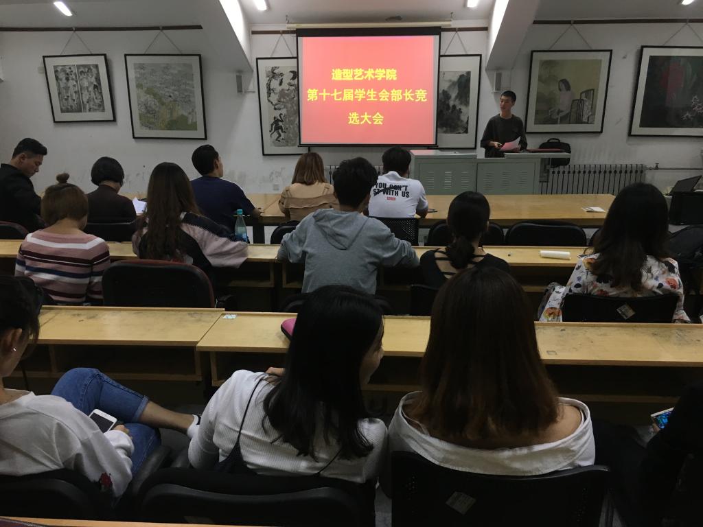 9月27日下午,造型艺术学院在四楼多媒体教室召开学生会换届选举大会。本次大会由第十六届学生会秘书长王琛珞主持,辅导员王艳辉老师、王晓琼老师,第十六届学生会主席团以及各部门部长及干事出席此次会议。本次大会秉承着公平、公正、公开的原则进行。