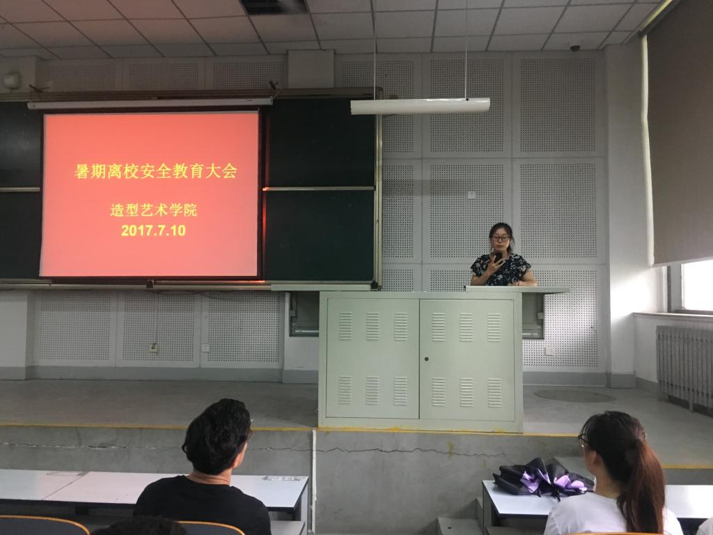 为确保同学们有一个平安愉快假期,切实做好假期安全教育工作,极力构建和谐校园,2017年7月10日,造型艺术学院于一合堂召开暑期离校安全大会。造型艺术学院辅导员王晓琼老师主持会议,2015级、2016级全体同学参加了此次大会。