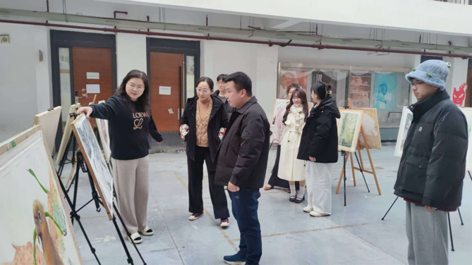 24 级数字媒体艺术专业创意素描、创意色彩联合课程教学成果展于1 号教学楼 4 楼西展厅,2024年11月30日-12月20日期间展出。12月6日下午,数字学院院长吴向阳,副院长张光帅、党总支副书记王华玲、教学秘书王皎到场参观、数字媒体艺术专业教研室主任牟堂娟、副主任李杨、教师张丽丽、田阔、王博、李润博等老师陪同参观展览。