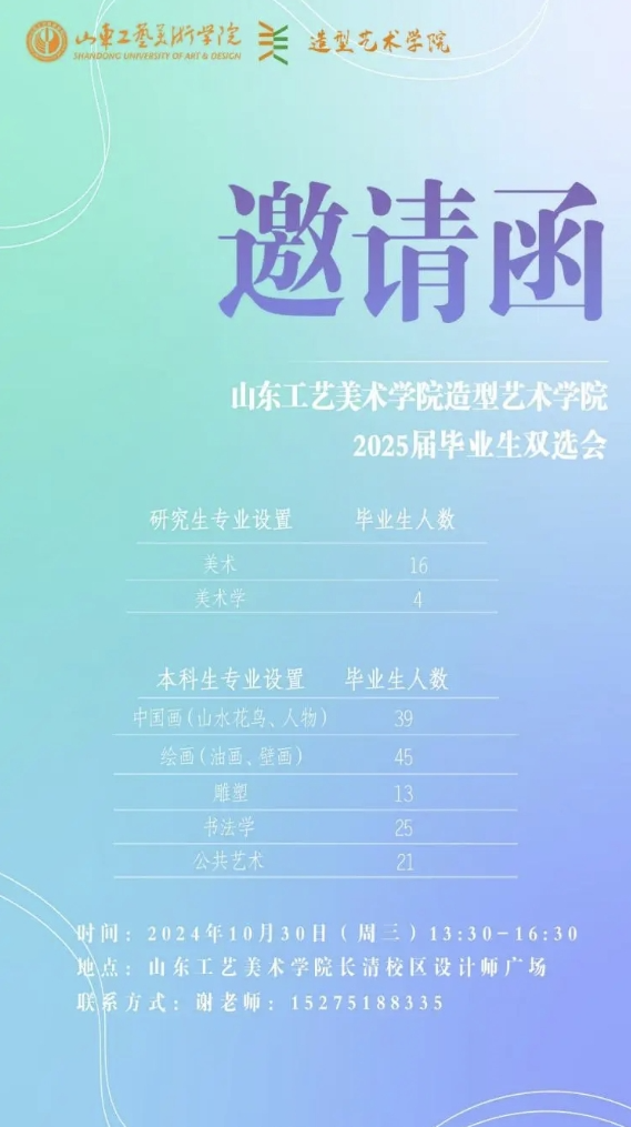 学院现有工艺美术、陶瓷艺术设计和公共艺术三个专业。其中工艺美术(下设染织纤维、玻璃、金属工艺、漆艺、首饰艺术五个专业方向)为国家级一流本科专业建设点、山东省名校工程重点建设专业、山东省高水平应用型立项建设专业和山东省高校“特色专业”。公共艺术为国家级一流本科专业建设点和山东省名校工程重点建设专业。学院四年制本科在校生600余人,平均每年招生约175人。建院50年来,共培养毕业生4000余人。其中2025年我院共有180名毕业生,其中研究生有22名,本科有158名。