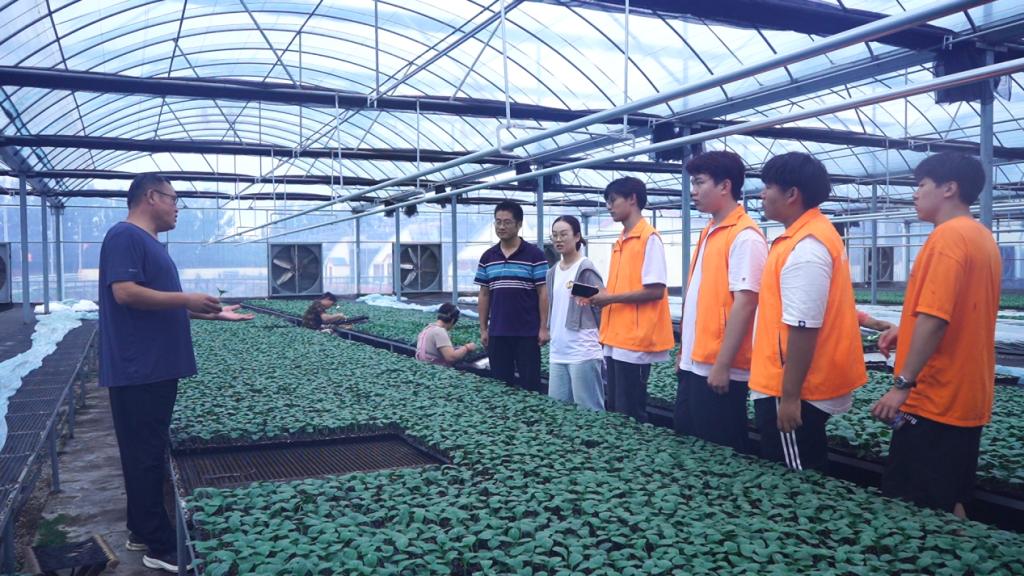 7月17日下午,团队师生参观调研了绿岛农业黄瓜育苗基地。企业负责人谢瑞坤介绍了黄瓜种苗繁育、产业规模发展情况,并带领师生参观了省级现代农业产业园项目支持的新型育苗连栋温室,同学们现场与农技人员交流,详细了解辛集黄瓜全产业链发展现状。