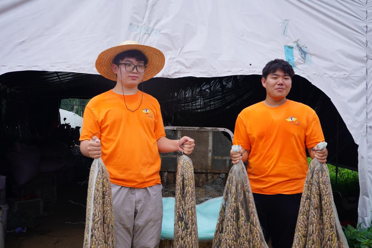 7月14日,团队师生参观凤头村蚂蚱养殖基地,了解凤头村蚂蚱养殖基地的发展过程和90后村支书秦其斌大学毕业后返乡创业事迹。秦其斌返乡后,积极探索新的发展模式,将蚂蚱养殖技术成功引进来,采取“党支部领办合作社+农户+企业”模式,共计投资90万左右,建设了70个蚂蚱大棚,一年下来一个棚的产值能达到1万元以上,经济效益非常可观。如今合作社已初具规模,形成“产加销”一体化发展链条,“小蚂蚱”摇身一变成了致富的“大蝗金”,实现了集体增收、村民受益、企业发展、乡村振兴的多方共赢。团队成员听了秦其斌的事迹后深受感动,以秦其斌返乡创业,把蚂蚱变“蝗金”,带领村民走上致富路为主线,深入了解蚂蚱养殖的发展过程、养殖技术,拍摄专题宣传片,讲述党建引领、同心共建的实际成效,呼吁年轻人回乡创业,在服务乡村、振兴乡村中贡献青春力量。