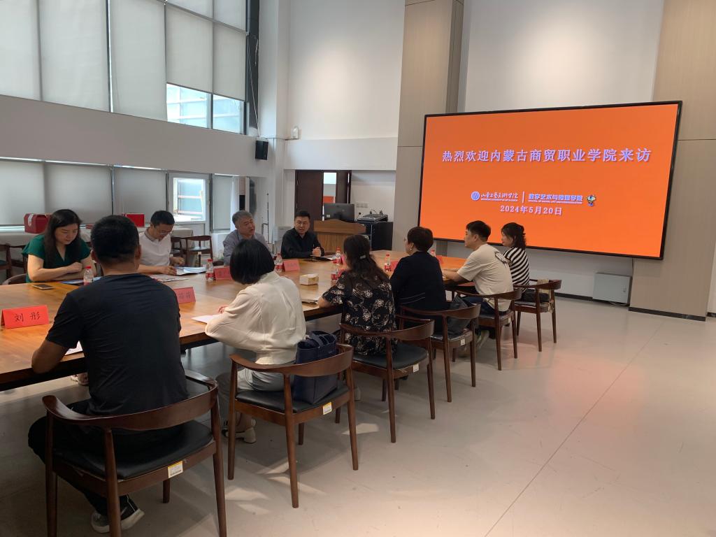 吴向阳对内蒙古商贸职业学院的来访表示欢迎,并详细介绍了我校在艺术类人才培养、实验室建设、教师队伍建设、校企合作等方面的情况。张光帅就人工智能介入艺术的发展进行了讲解,与会人员还就双方就今后进一步加强校校合作、资源共享,合作开展人才共育项目、产教融合项目等进行了深入探讨。