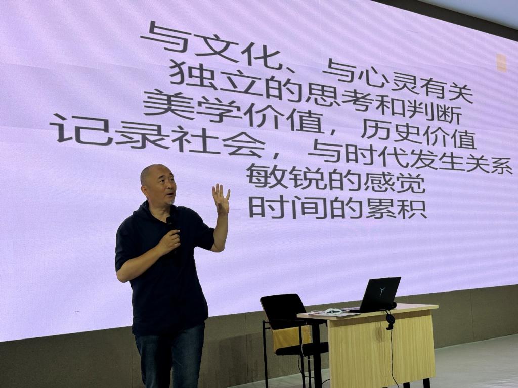 讲座现场,吕廷川老师对摄影的热爱与执着以及他对视觉作品的艺术思考,激发了同学们对专题摄影的关注和创造力,不仅学到了专题摄影的专业知识,更领悟到了摄影艺术的真谛和魅力。摄影不仅是一种技艺,更是与时代对话的方式。他的作品不仅捕捉了城市的宏观景象,也揭示了生活中的细微之处。从大都市的繁华开放,到街头巷尾的生活琐碎,每一处都被他赋予了深刻的内涵,让观者能从中品味出生活的韵味与时代的脉搏。