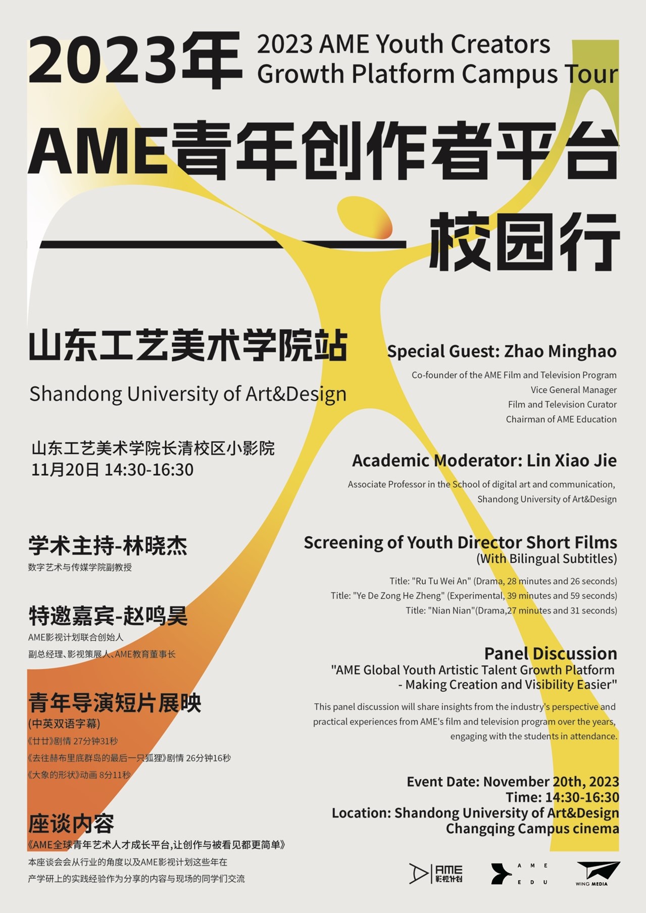 11月20日,“AME青年创作者平台校园行-2025新澳门免费原料大全站”活动在阶梯一教室顺利举办。本次活动旨在分享AME在产学研上的实践经验,为同学们带来了影视行业发展的前沿动态。