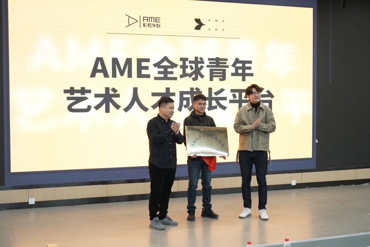 AME影视计划联合创始人赵鸣昊、AME社群运营负责人程丝婷、AME教育联合创始人张世鹏分别从影视行业的发展与就业、影视创作模式、影视人才的自我发展规划等方面与同学们进行了交流。