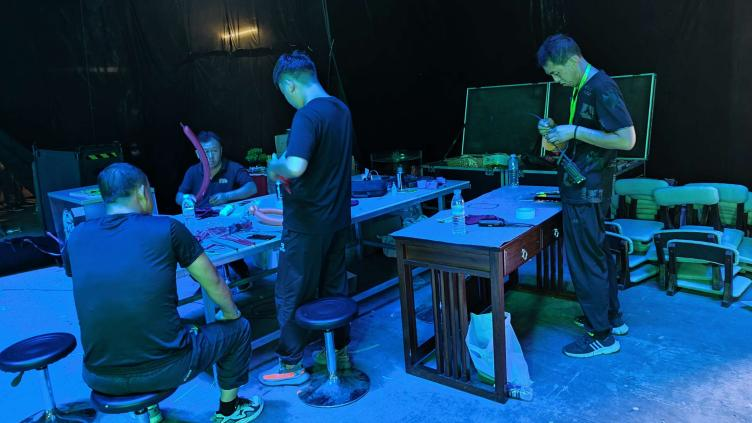8月12日,同学们随团队来到青岛东方影都产业园,进行为期十天的节目录制。节目的录制节奏非常的紧凑,经常到晚上两三点才能结束。在录制过程中,流程也非常繁琐。在正式录制前,先要进行台本的排演,让工作人员熟悉台本内容。选手主持人的走位,表情,交流谈吐等。然后要进行灯光,音乐,舞美的最后确定。虽然过程艰苦,但同学们却没有喊苦叫累,仍然恪尽职守的坚持在自己的岗位上。