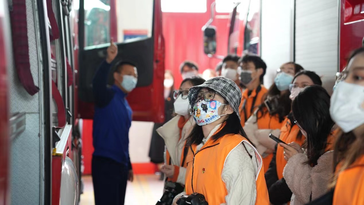 紧接着,同学们依次参观了队站营区、寝室、车库、消防员之家、荣誉室等场所。同学们对队站整齐规范的内务设置和消防队员们良好的精神风貌表示赞叹。本次活动也真正做到了“零距离”接触消防,感受消防的魅力。