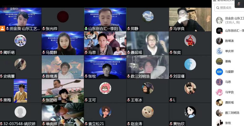 此次空中宣讲会,校企合作双方高度重视,均派出多名代表参会。会议由项目负责人数字艺术与传媒学院新媒体艺术教研室主任田金良主持,合作企业山东创合汇文化发展有限公司总经理李阳,项目总监王晓、马爱群等出席,李阳总经理和马爱群总监从就业形式、职业规划,新媒体复合型人才培养需要方面做了分享和汇报。项目组的成员新媒体艺术教研室副主任张牧老师,党委宣传部校报编辑部主任郑静老师,学生工作部(处)就业指导中心主任栗梅老师参加了研讨,并先后发言。数字艺术与传媒学院副院长张光帅总结发言,来自我校各专业的一百二十余位同学听取了汇报,并参与了交流和讨论。