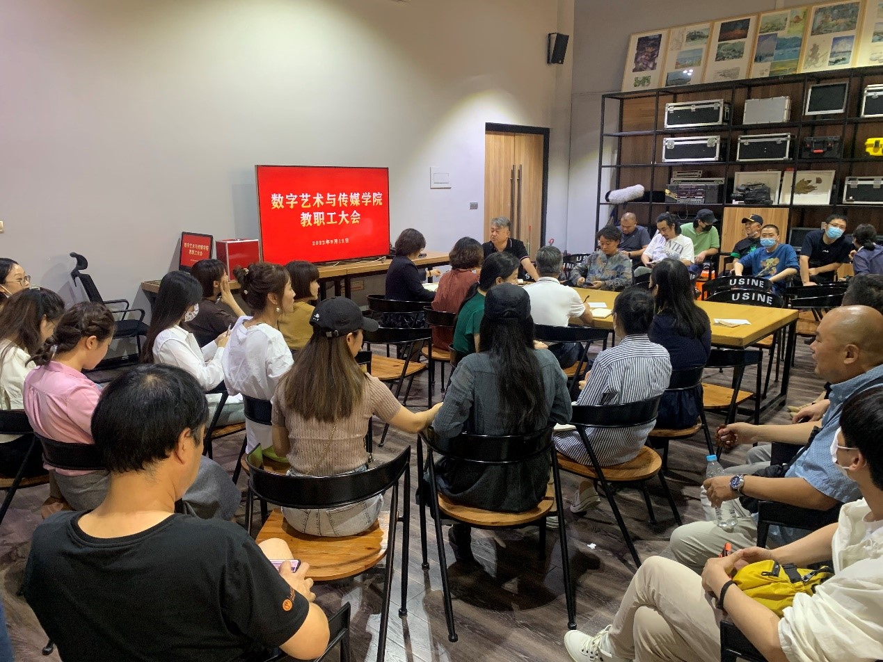 2022年9月12 日下午,数字艺术与传媒学院在数字演播厅二楼2005会议室召开教职工大会。学院全体教职工参加会议。
