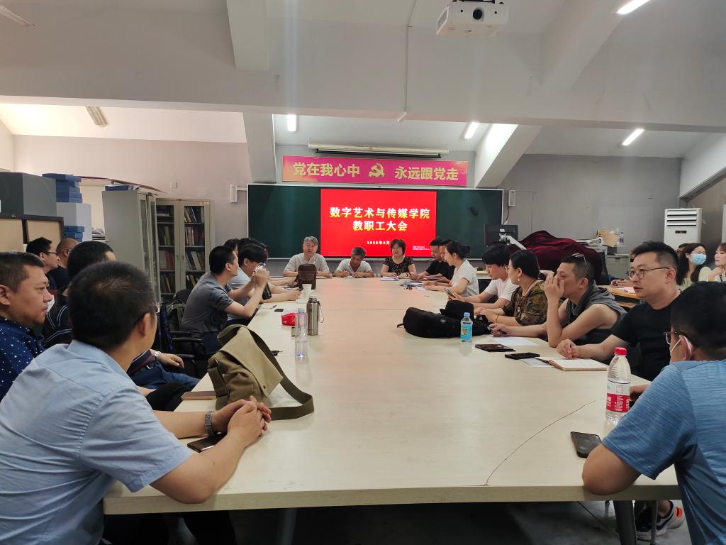 6月20日上午,数字艺术与传媒学院在学院多媒体教室召开全体教职工大会。本次会议由数字艺术与传媒学院院长吴向阳主持,学院党政领导班子成员及全体教职工参会。