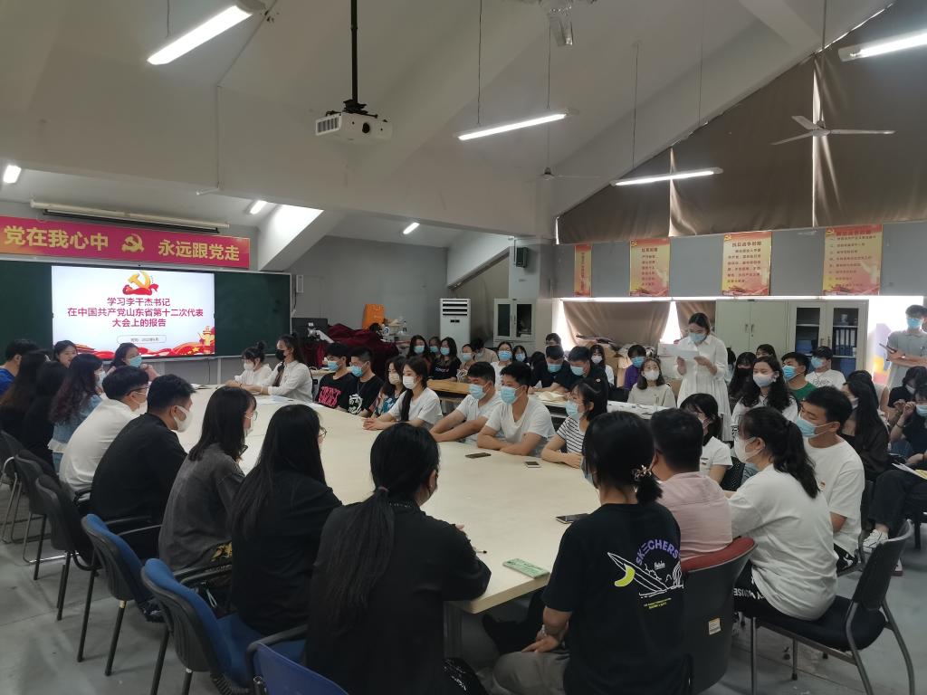 5月28日到6月1日,中国共产党山东省第十二次代表大会在山东会堂胜利召开。为了更好地学习领悟本次大会精神,引导青年大学生听党话、跟党走,数字艺术与传媒学院学生第一、第二党支部于2022年6月15日下午,在B446会议室,组织学生党支部全体党员,集中学习李干杰同志在山东省第十二次党代会上作的报告。