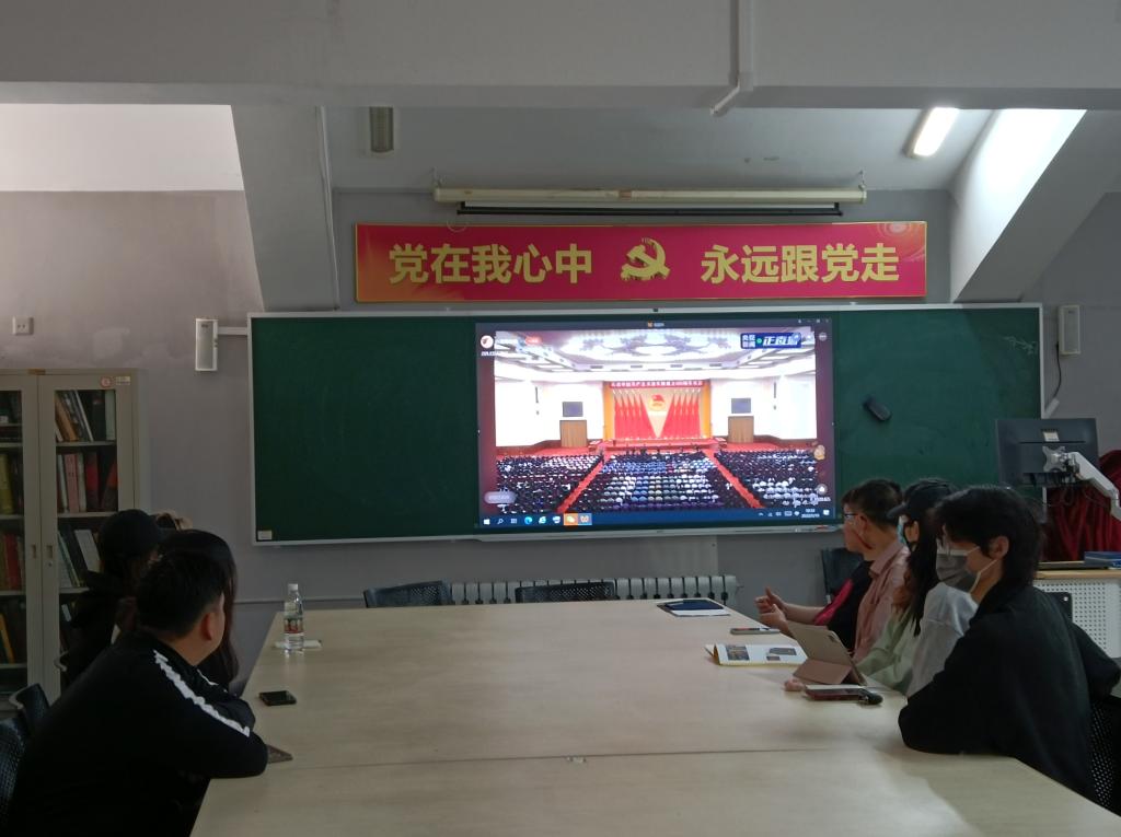 为严格落实疫情防控要求,学院安排了集中观看与分散观看两种方式,组织优秀共青团员代表、优秀青年志愿者代表、各团属学生组织代表于b446教室进行大会直播的集中观看。