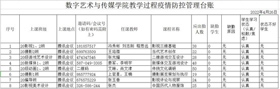 线上教学已有5周,我院依次结课、开课的课程累计已有28门。线上教学保持的良好的秩序,结课的作业也能达到任课教师的课程要求。本周,数字学院上课的师生依然认真履行按时上下课、上课点名、教师观察学生学习状态等教学常规性活动。