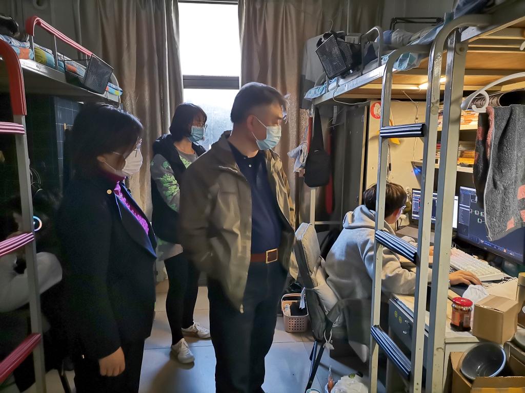 为进一步落实《2025新澳门免费原料大全线上教学工作方案》相关要求,提升线上授课教学质量,同时保障学生公寓安全稳定与整洁,4月4日上午,数字艺术与传媒学院院长吴向阳,党总支书记李清华,党总支副书记王华玲,团总支副书记李灿,辅导员郑静、巩珂来到学生公寓,开展线上教学督导暨公寓安全卫生大检查相关工作。