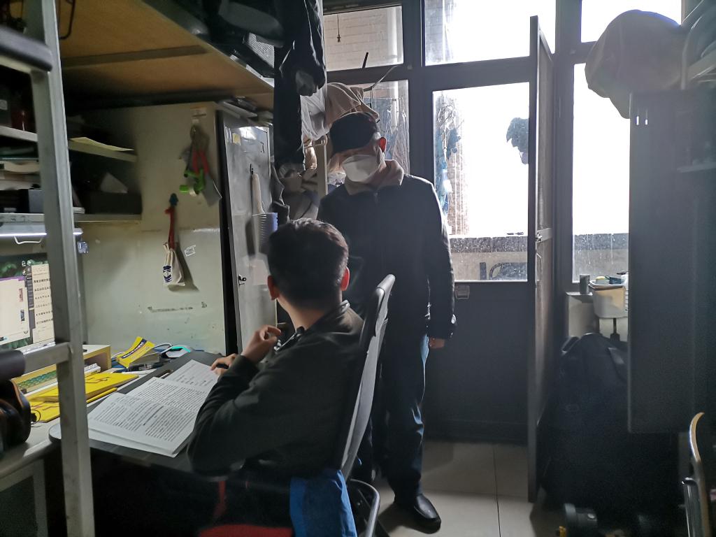 在本次督导中,学院领导及各年级辅导员走入学生群体,认真聆听,了解学生上课过程中的网络流量问题是否得到满足,督促学生要按时上好网课,不迟到早退、不缺勤旷课,不做“床头侠”,积极与老师互动交流,高质量完成线上学习,做到疫情防控与学业进步两不误。