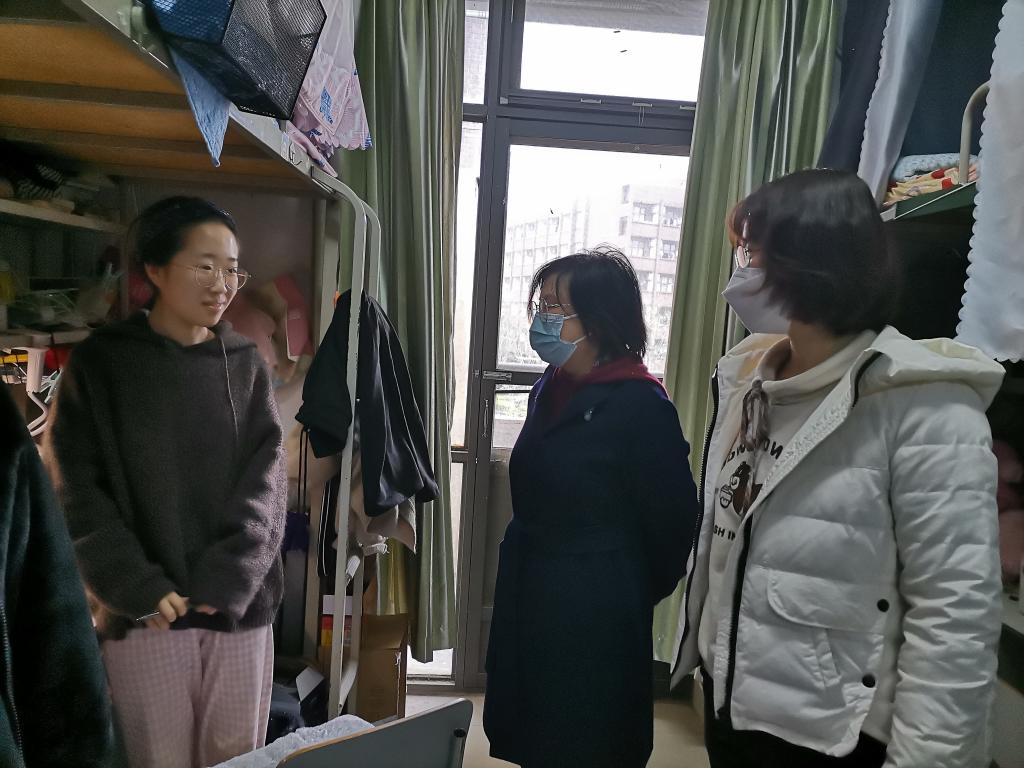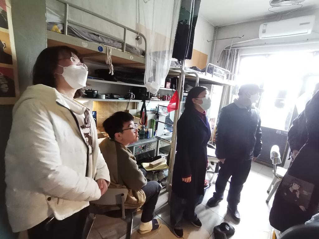 3月30日,我校全面启动线上教学。为了确保教育教学各项工作有序开展,保证教学质量,了解学生线上学习的现状和现实需求,3月30日上午,数字艺术与传媒学院院长吴向阳、党总支书记李清华、党总支副书记王华玲,带领各年级辅导员李灿、郑静、巩珂、孙超越,前往1号公寓和3号公寓走访各年级学生。