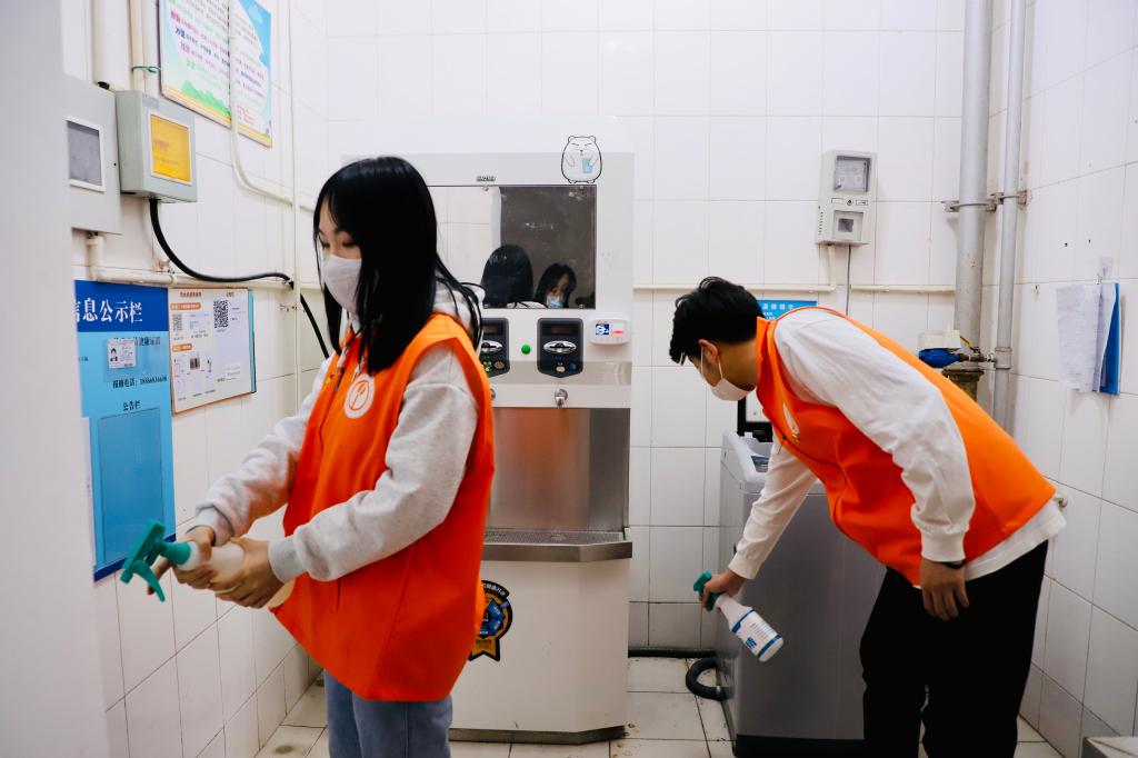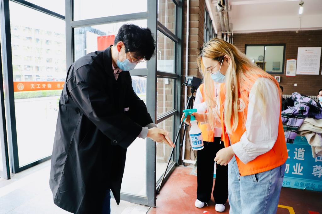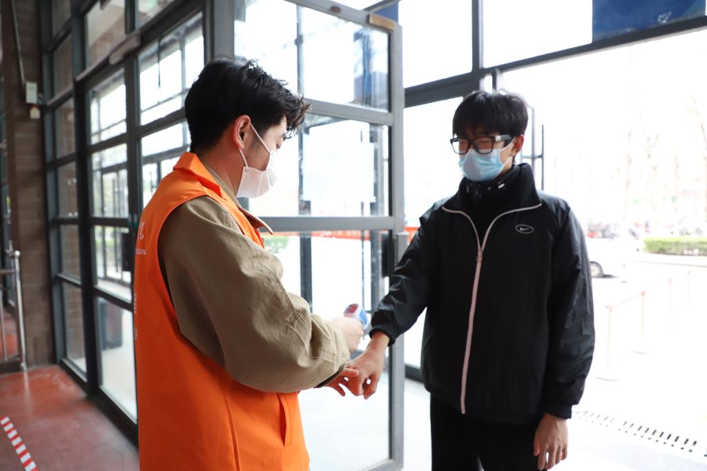 此次疫情防控主要是做好学生公寓日常消毒测温工作。在1号公寓公寓现场划分应体温测量、楼道电梯消毒,信息登记区、及时消毒杀菌等环节。严格落实体温检测、“1米线”间隔、规范佩戴口罩等防护措施。