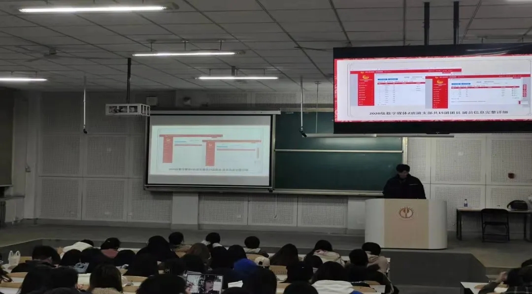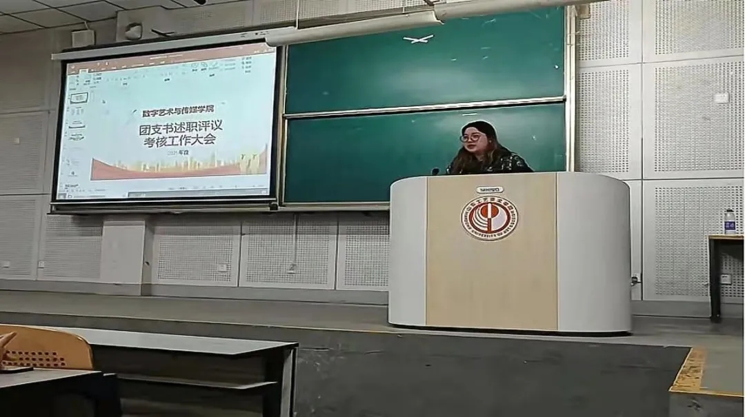 为更好落实团委重点工作,坚持一切工作到支部,指导推动团支部加强建设、规范运行,不断提升组织力,彰显政治功能和社会功能,更好地为广大团员提供优质的服务,2021年12月2日,数字艺术与传媒学院团总支在办公楼六合堂开展团支书述职报告工作。本次会议由团总支委员苏晓芳梓主持,团总支副书记李灿老师,辅导员巩珂老师、孙超越老师以及各年级团支书参加。