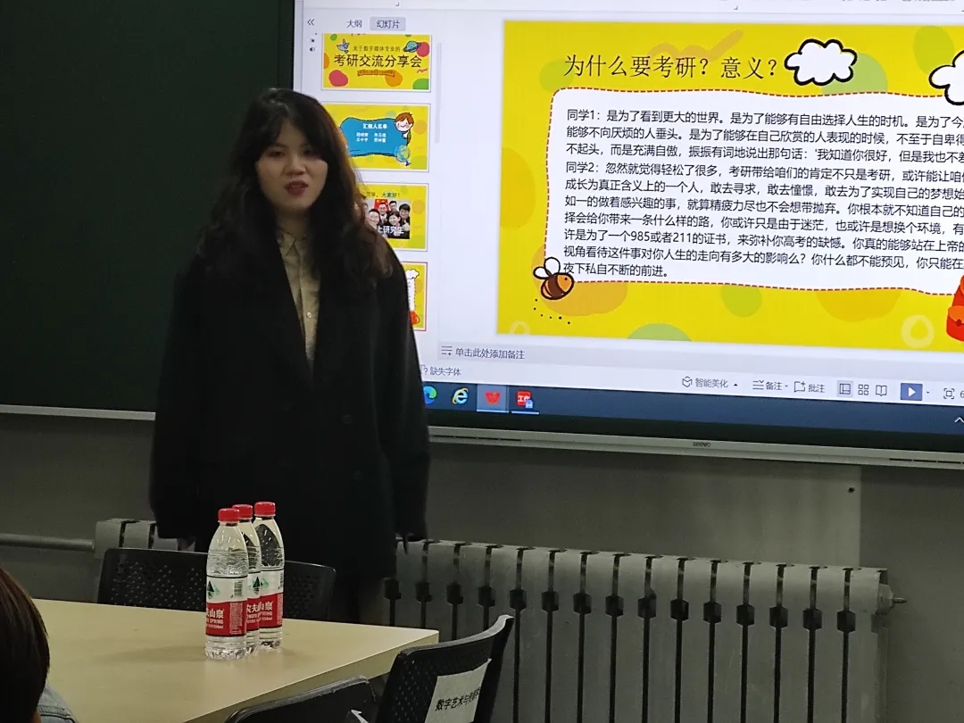 为帮助考研学子全面了解考研形势与政策,端正备考心态,科学规划未来。2021年10月31号晚,数字艺术与传媒学院于办公楼b446举办考研经验交流会,本次讲座邀请我校在读研究生同学来分享考研经验。