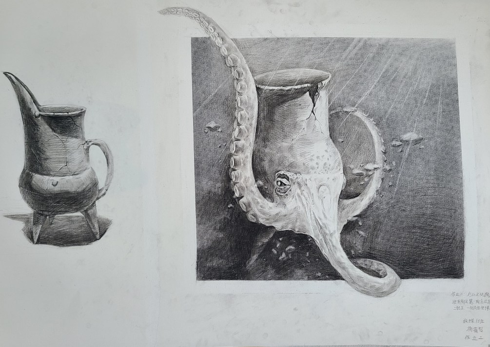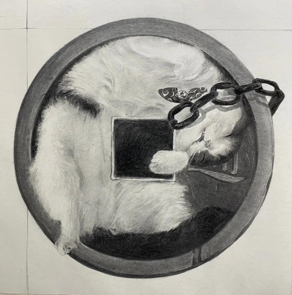 《铜钱猫》 作者;赵诣(新媒体)-素描 指导老师:田金良