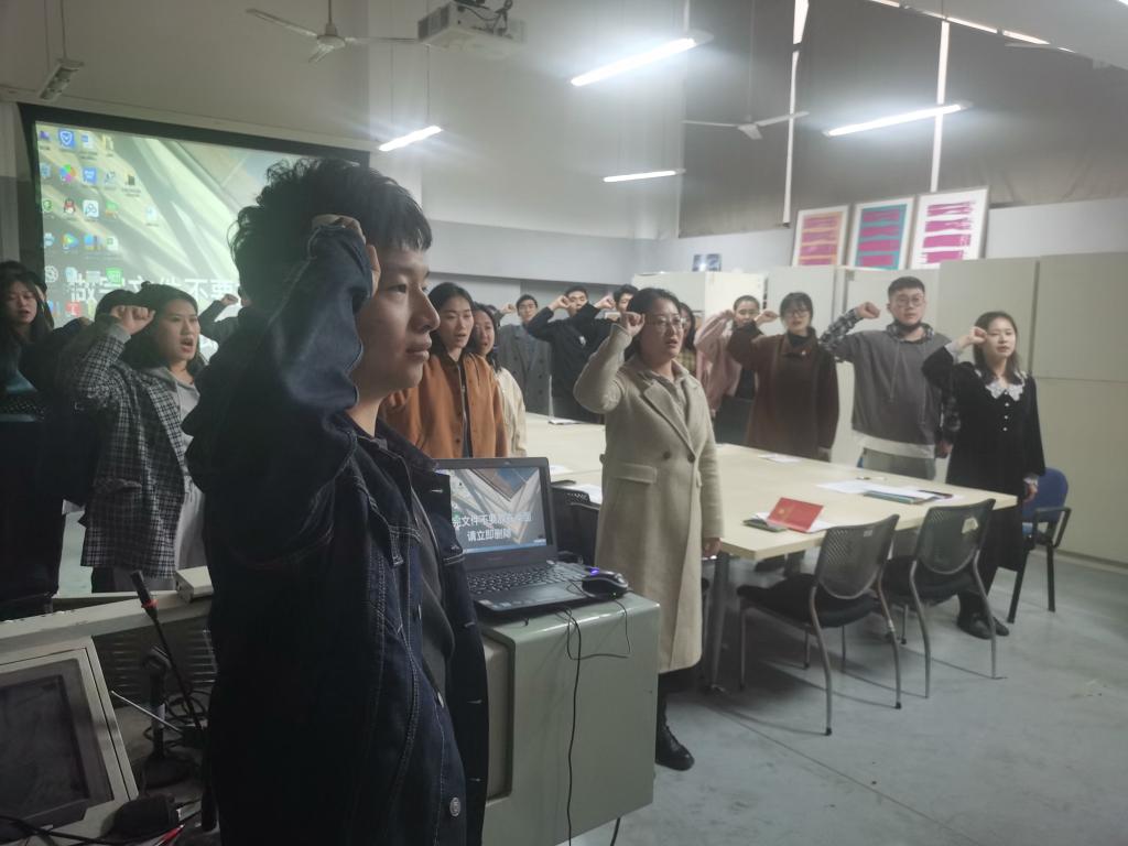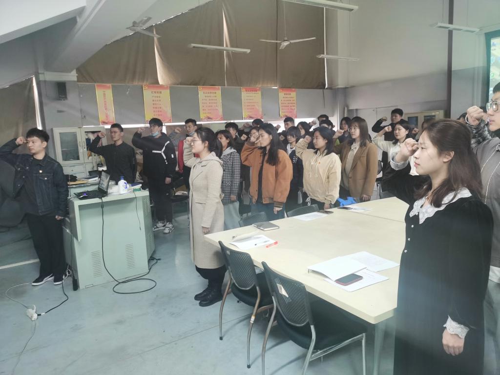 4月6日下午,数字艺术与传媒学院学生第一、第二党支部在B446会议室开展“重温入党誓词、坚定理想信念”主题党日活动。学生第一、第二党支部全体党员参加了本次党日活动。
