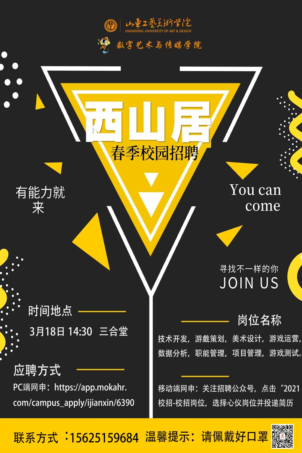 为锻炼学生的实践能力和激发学生创造力,帮助毕业生尽快就业。2021年3月18号下午2点,数字艺术与传媒学院与金山西山居游戏公司共同合作举办了“2021年春季校园招聘”活动。数字艺术与传媒学院学生积极参与。