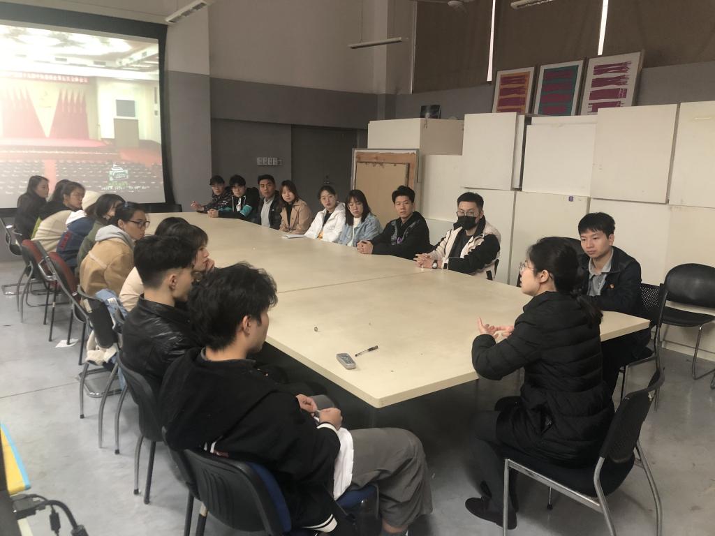 11月23日下午,数字艺术与传媒学院学生第一、第二党支部全体党员、以及2020级新生代表,在支部书记郑静带领下,于长清校区B446会议室共同观看了十九届五中全会视频全程回放,学习了党的十九届五中全会精神,并对会议主要内容展开热议。