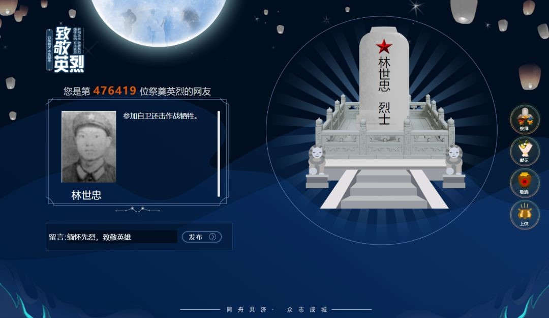 一、进入《中华英烈网》,选择板块“致敬·2020清明祭英烈”。
