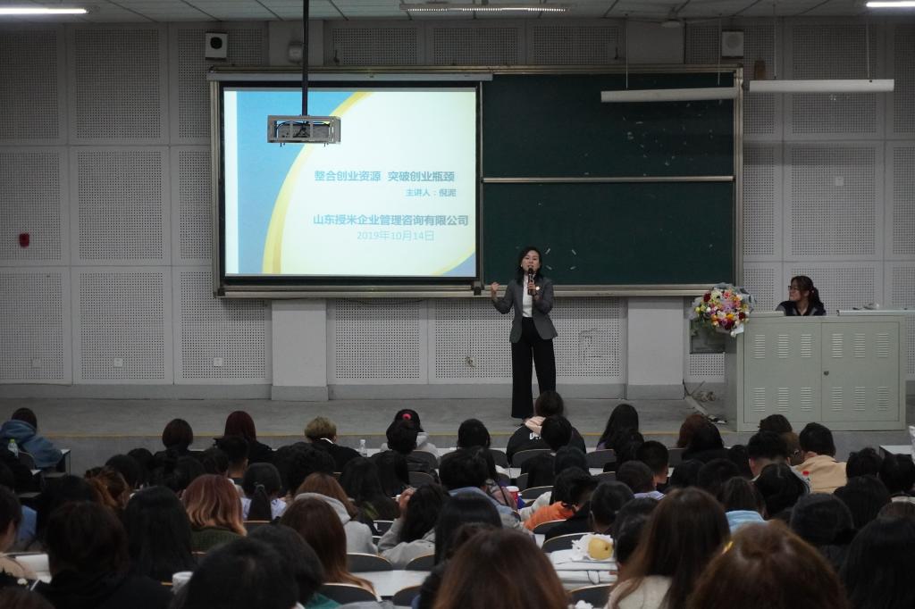 恰逢我校2020届毕业生秋季招聘会来临之际,为提升大学生就业创业能力,2019年10月14日,数字艺术与传媒学院在三合堂组织了题为“整合创业资源,突破创业瓶颈”的就业创业指导讲座,主讲人山东授米企业管理咨询有限公司经理人倪泥。