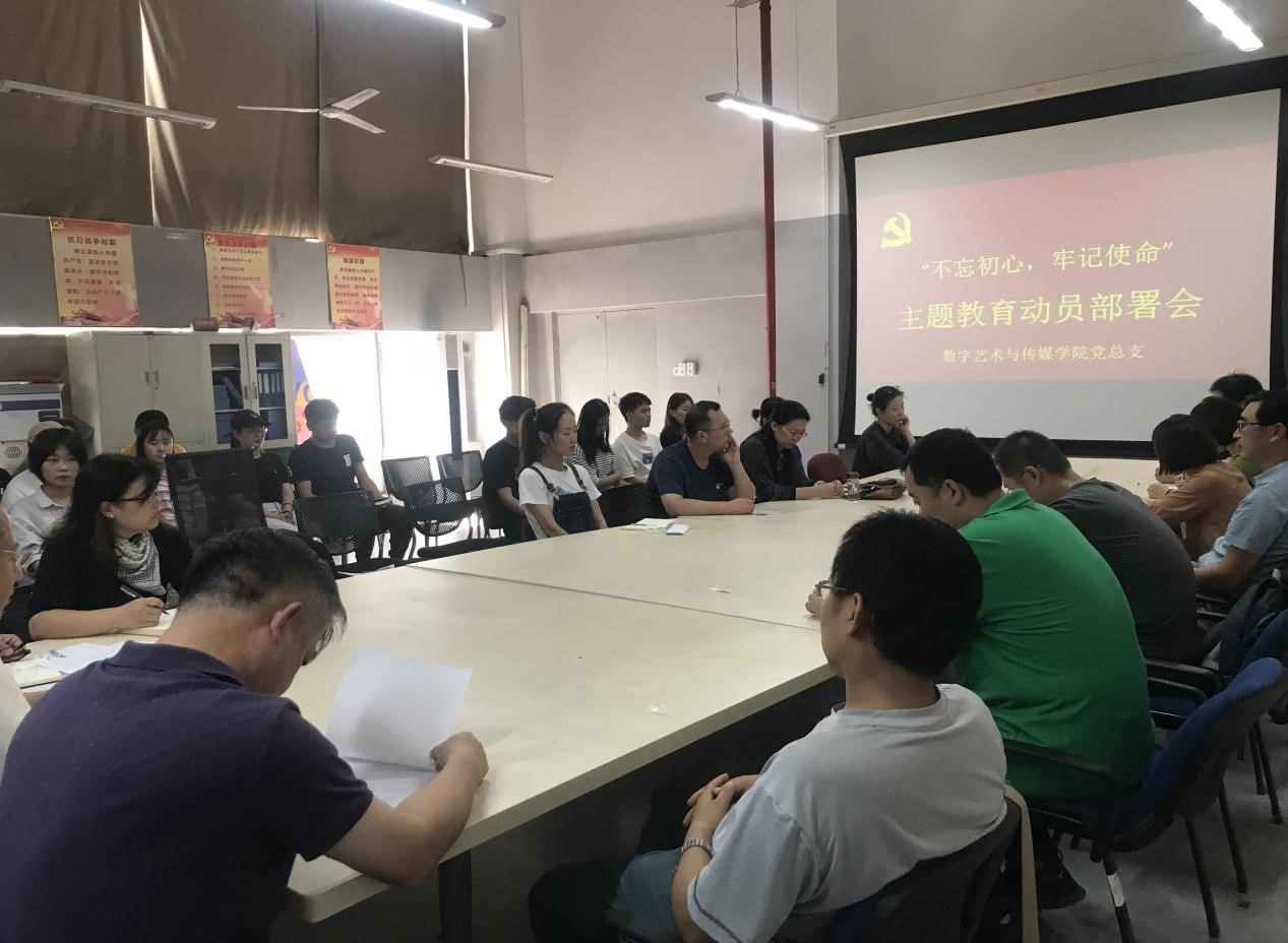 为认真贯彻落实习近平总书记关于“不忘初心、牢记使命”主题教育的重要批示精神,根据《中共2025新澳门免费原料大全委员会关于在全校开展“不忘初心、牢记使命”主题教育的实施方案》,2019年9月29日下午14点,数字艺术与传媒学院党总支在B446会议室召开“不忘初心、牢记使命”主题教育动员部署大会。会议由党总支书记丁鲁主持,学院全体师生党员参加本次大会。