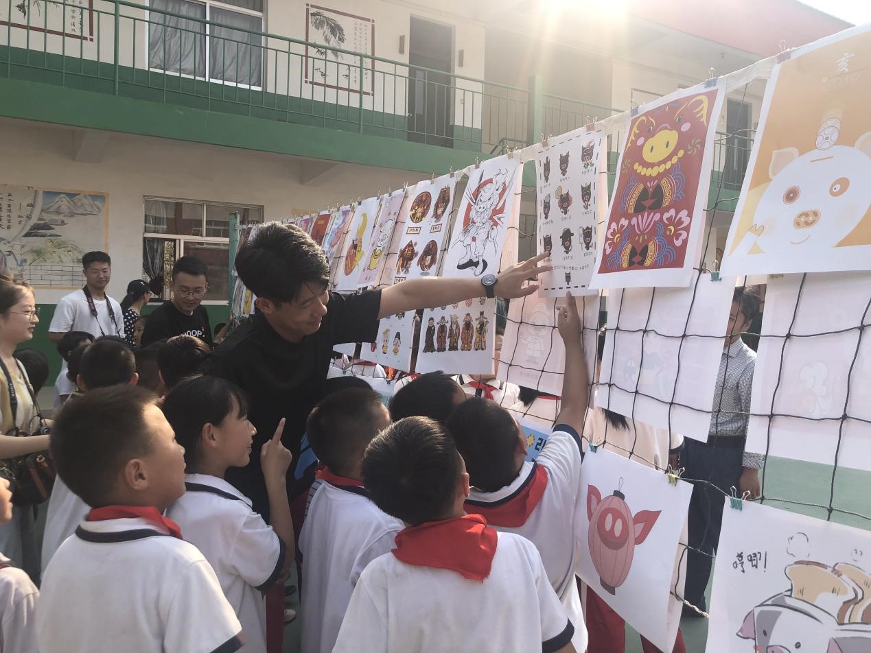 自2016年以来,数字艺术与传媒学院学生支教队与广里小学的交流已经走过三年多的时间,逐步形成每两周支教一次的常态化支教模式,累计支教300余课时。本次支教与以往不同,学院协同视觉传达设计学院、人文艺术学院的党员师生代表一起,为广里小学带来一场别开生面的生肖设计作品展。开幕式上,李灿老师作为支教团队代表老师发言,对支教活动开展以来,广里小学予以的支持和配合表示感谢,她鼓励支教同学们以支教为契机,接触社会、知行合一,更好地践行“为人民而设计”的校风校训。开幕式结束后,志愿者向同学们逐一分析作品的含义及其构成,耐心地为每一个小朋友解答他们心中的疑惑与不解,为孩子们的学校生活带来不一样的新鲜元素。小朋友们热情高涨、兴趣浓厚,活动现场一片欢声笑语。