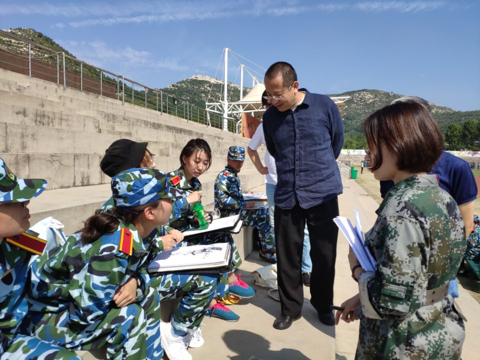数字艺术与传媒学院院长顾群业、党总支书记丁鲁、党总支副书记李清华教师代表丁鲁等,十分重视新生军训,多次到现场指导工作,慰问承训教官和参训新生,关心学生的身体状况,并对军训前期训练成果给予了充分肯定。七营教导员、辅导员郑静认真配合教官,按照军训标准,对新生严格要求,保障了军训的质量。同时,郑老师帮助新生尽快适应大学生生活,解决新生军训中、生活中的各项问题,扎实做好新生的思想政治工作。
