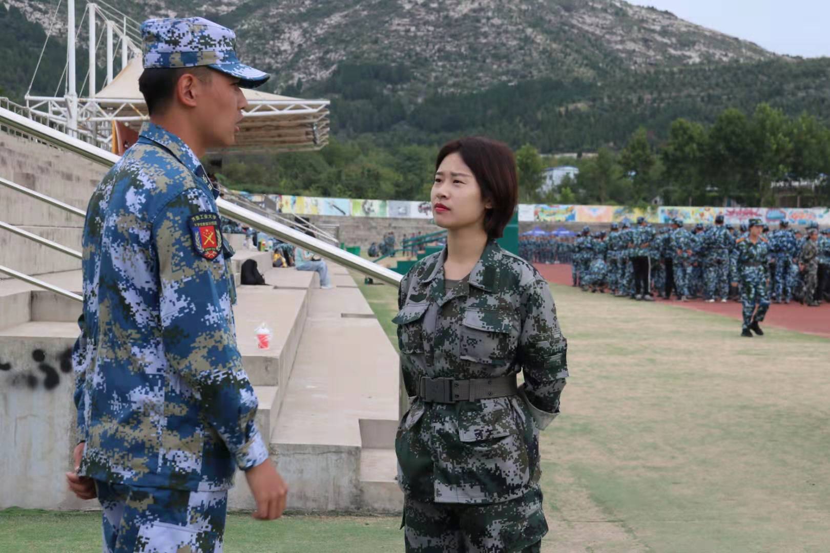 两位连长以学校统一军训标准为依据,对新生严格要求,对新生的四面转法、原地踏步等进行了一对一悉心指导,在嗓音沙哑疼痛的情况下,仍旧坚持训练,丝毫没有降低训练标准,切实保障了军训质量。、